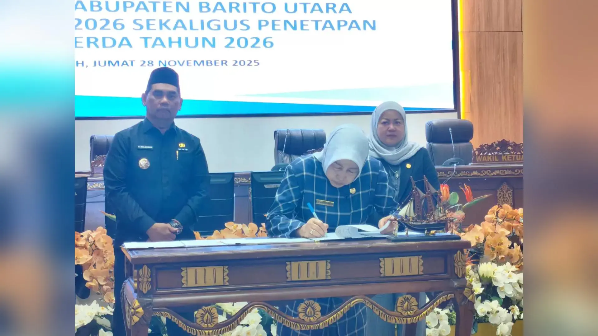 Ketua DPRD Barito Utara, Ir. Hj. Merry Rukaini, M.IP., menyampaikan bahwa pengesahan tersebut merupakan hasil pembahasan yang dilakukan secara komprehensif. “Pembahasan APBD Tahun 2026 telah tuntas dan disepakati bersama. Ini merupakan wujud tanggung jawab kami untuk mewujudkan kesejahteraan masyarakat,” katanya.