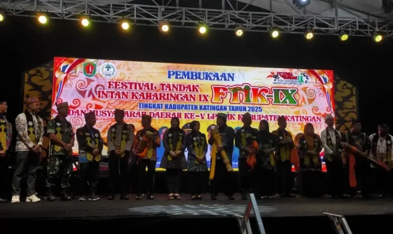 KASONGAN, KaltengHits.com – Dalam suasana sakral dan penuh makna, Lembaga Pengembangan Tandak Intan Kaharingan Kabupaten Katingan menggelar Festival Tandak di halaman Sport Center Kasongan. Acara ini secara resmi dibuka oleh Bupati Katingan, Saiful, dengan pemukulan katambung, diiringi doa adat sebagai simbol penyatuan antara manusia, alam, dan roh leluhur.
