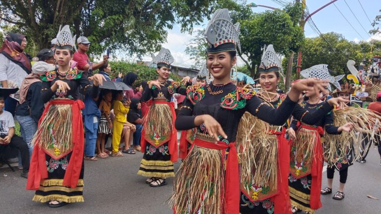 Puluhan mobil hias dan ribuan peserta tampak menyajikan atraksi kebudayaan khas daerah Kalteng bagi para penonton.