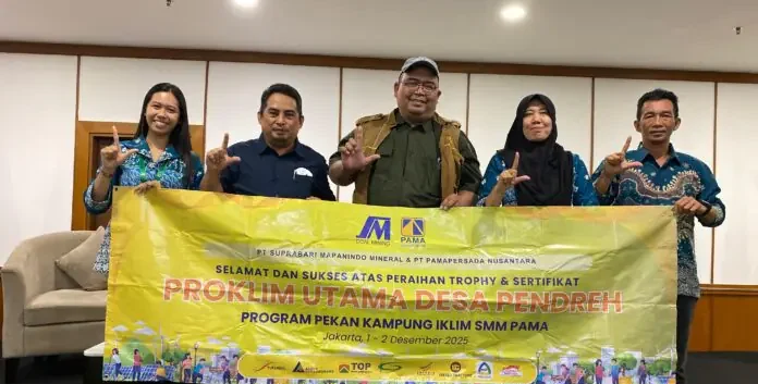 MUARA TEWEH, Kaltenghits.com – Desa Pendreh, Kabupaten Barito Utara, berhasil meraih Trophy dan Sertifikat ProKlim Utama tingkat nasional dari Kementerian Lingkungan Hidup dan Kehutanan (KLHK). Prestasi ini diraih berkat kolaborasi sinergis antara PT Suprabari Mapanindo Mineral (SMM), Dinas Lingkungan Hidup (DLH) Barito Utara, serta masyarakat Desa Pendreh dalam memperkuat aksi lingkungan dan ketahanan iklim di tingkat desa.