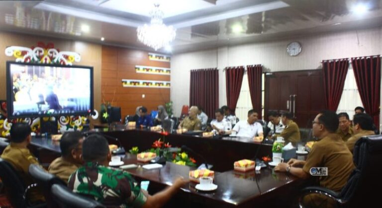 PURUK CAHU, kaltenghits.com – Pemerintah Kabupaten (Pemkab) Murung Raya (Mura) secara virtual mengikuti Rapat Koordinasi (Rakor) dalam rangka pembahasan langkah konkret pengendalian inflasi di Daerah tahun 2024 dan memastikan ketersediaan dan stabilisasi pangan menjelang, selama dan pasca Hari Besar Keagamaan Nasional (HKBN), di aula A Kantor Bupati Murung Raya, Senin (4/3/2024).