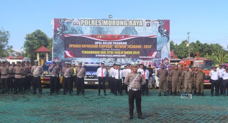 PURUK CAHU, KaltengHits.com – Polres Murung Raya (Mura) melaksanakan Apel Gelar Operasi Ketupat Telabang Tahun 2024 dalam rangka pengamanan perayaan Hari Raya Idulfitri 1445 H/ 2024 M. Apel dipimpin Kapolres Mura, AKBP Irwansah di lapangan Mapolres setempat, Rabu (03/04/2024).