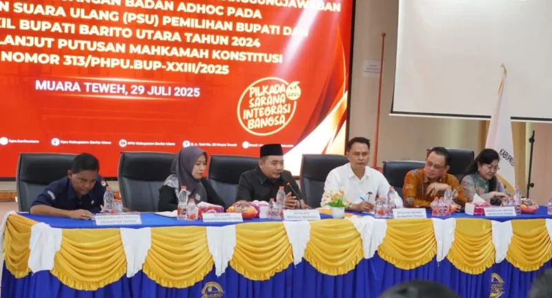 MUARA TEWEH, Kaltenghits.com – Ketua KPU RI, Mochammad Afifuddin, menegaskan bahwa pelaksanaan Pemungutan Suara Ulang (PSU) di Kabupaten Barito Utara merupakan tanggung jawab seluruh elemen, bukan hanya KPU semata, melainkan juga bentuk pengabdian terhadap demokrasi. Hal ini disampaikan dalam kunjungan kerja supervisi dan monitoring kesiapan PSU di Barito Utara, Kalimantan Tengah, Selasa (29/7/2025).