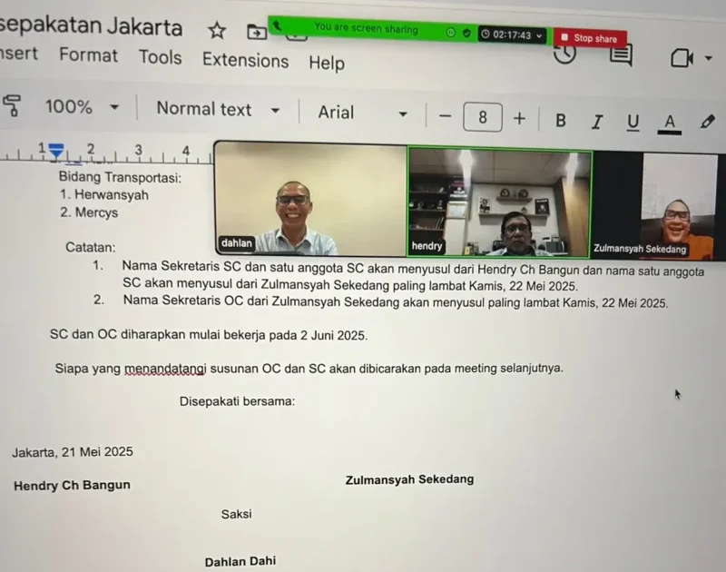 Kedua pihak sepakat, panitia Kongres Persatuan (OC dan SC) diharapkan mulai bekerja 2 Juni 2025. (*red)